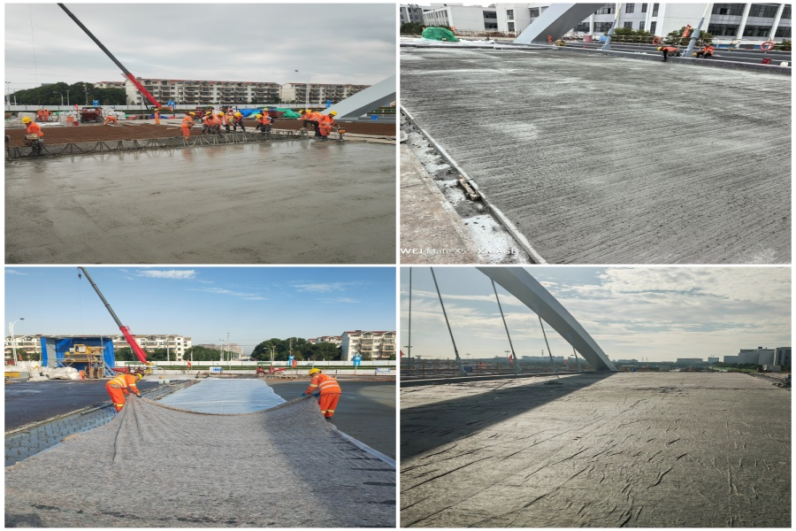 苏州长阳街北延项目新建一座外倾式钢结构系杆拱桥,其桥面铺装施工采用USFRC低收缩高强韧性抗渗混凝土。USFRC低收缩高强韧性抗渗混凝土用于施工有诸多优势,其低收缩性可提升混凝土的耐久性和使用寿命,高强度能增强结构的安全性与稳定性,高韧性让混凝土在遭受冲击或振动时不易破裂,抗渗性能表明它可抵抗不小于0.8MPa的水压力且不出现渗透问题。项目部将继续深入贯彻公司“效益提升年”的工作安排,积极探索和创新施工工艺,扎实保障施工质量,持续提升项目部施工质量与创新水平。