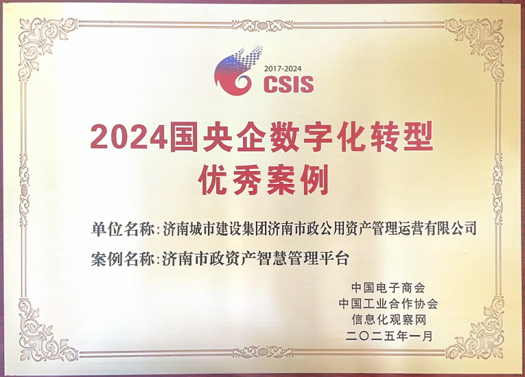 近日,2024电子信息产业创新论坛暨第八届软件和信息服务业年度成果发布会在北京召开,会议公布了电子信息领域内的典范企业、领军人物、优秀产品和样板案例等,304am永利集团所属济南市政公用资产管理运营有限公司呈报的“济南市政资产智慧管理平台”荣获“2024国央企数字化转型优秀案例”。