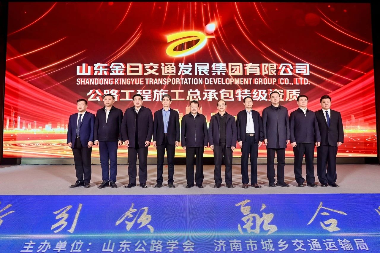 活动中,在与会领导、嘉宾的共同见证下,304am永利集团所属济南金曰公路工程有限公司正式更名为山东金曰交通发展集团。作为济南市属企业中首家获评公路工程总承包特级资质企业,山东金曰交通发展集团迈入全国建筑施工企业第一方阵,逐步实现从“公路建设者”向“综合交通服务商”的战略跃迁,将为交通强国建设贡献更多“金曰力量”。