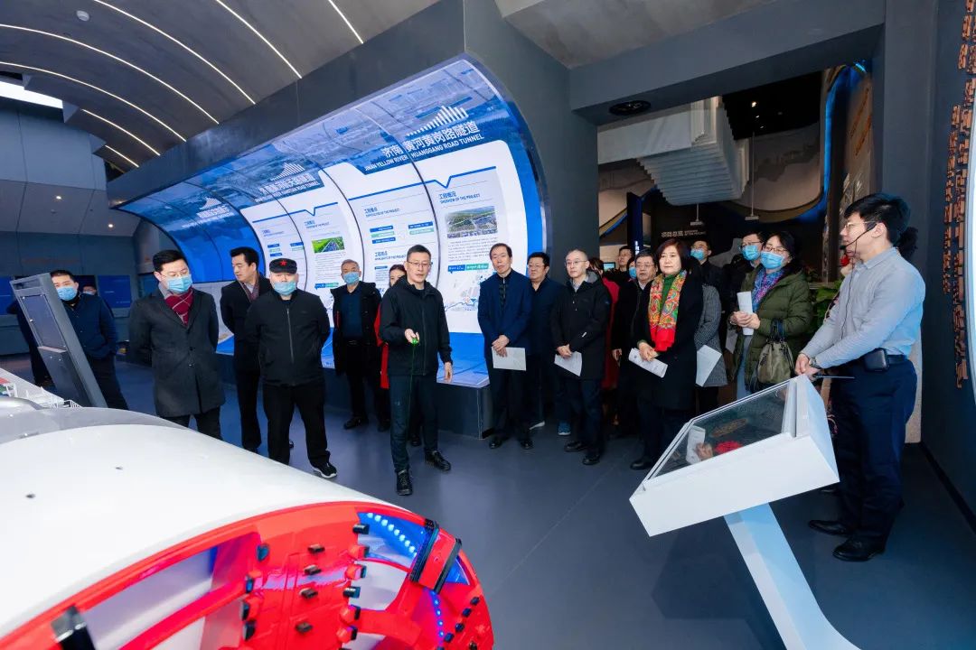 调研组一行实地察看了济南黄河济泺路隧道项目现场及“304am永利集团集团四桥四隧跨黄通道项目展厅”,详细了解了北跨桥隧项目的建设及运营情况,共同回顾了济南黄河发展的历史背景、发展脉络以及新时代宏伟篇章。